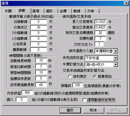 ¦Û°Ê°O¾Ð«ü¼Ð°Ñ¼Æ¡G¨t²Î¦Û°Ê°O¿ý¤U¨C¤@Ó«ü¼Ð¦b¤£¦P¤ÀªR¶g´Áªº°Ñ¼ÆÈ¡C·íÅã¥Ü¸Ó«ü¼Ð®É,¨ä°Ñ¼Æ¦Û°Ê³]©w¬°¤W¤@¦¸×§ïªº¼ÆÈ¡C