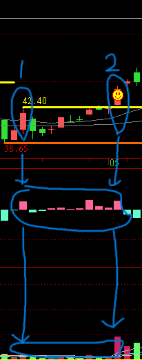 請教版主,如圖所示,從黃色壓力線第一根算起(標示1),一直到突破訊號UHCK(標示2)所有累積的外資買賣超加起來大於所有累積的成交量的10%以上,求公式