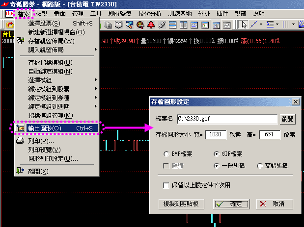 檔案\輸出圖形\在存檔圖形設定表單內\按確定