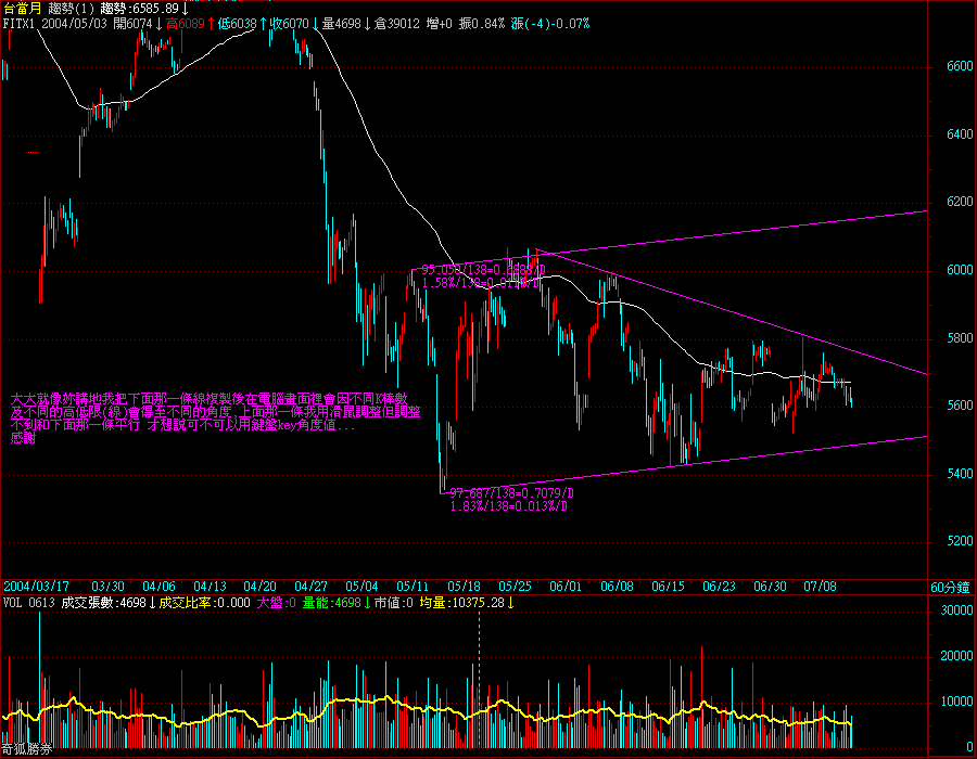 請問 1.要劃一條平行的線例如畫一條和趨勢線平行的線要如畫昵