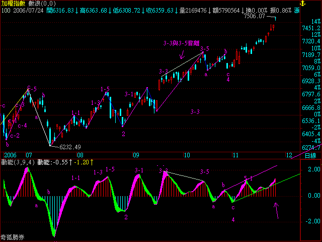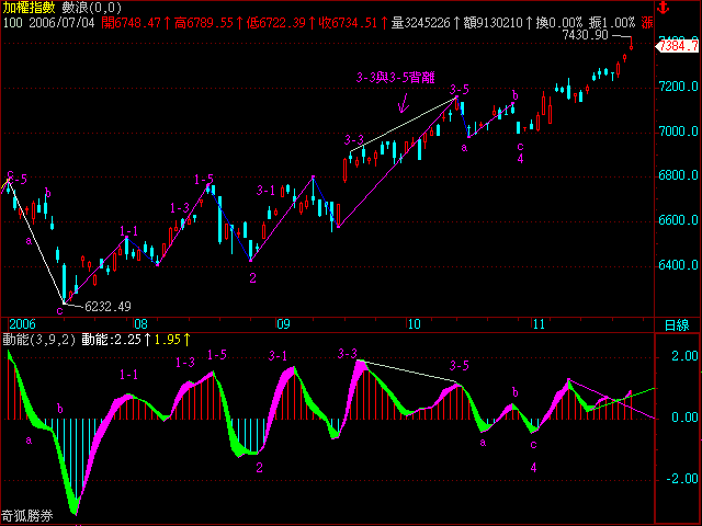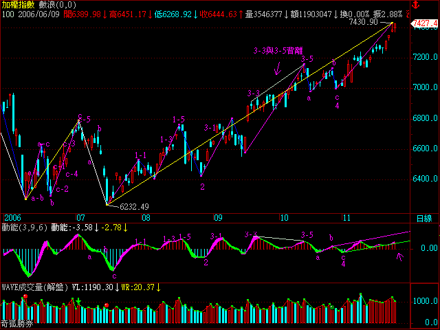 因為WAVE-幅度5,WAVE成交量,WAVE動能是用數浪指標寫出來的,但您可以根據理論加上清揚的波浪結構來寫,實際應用上,用波浪尺,也可畫出.