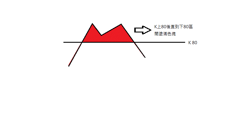 如何讓KD之K上80後直到下80區間中塗滿色塊舉例如下圖