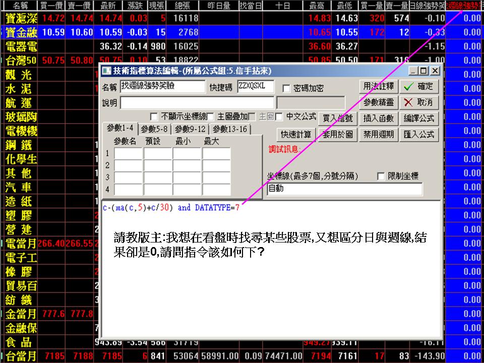 我想比較自選股中個股間日線和週線彼此的數字排序高低,以判斷強弱,日線的計算沒有問題,但是週線的計算結果卻全部是0,不知問題出在哪裡?
