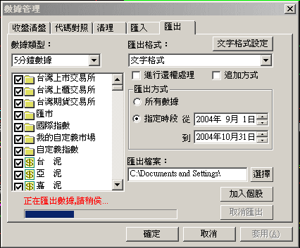 你是要匯出所有股票的文字檔或是要保存九月或十月的資料