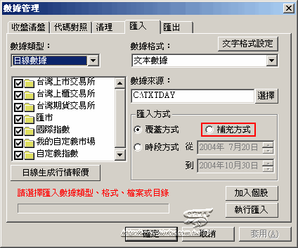 若商品資料非奇狐內建,而是外部引入則每日匯入,國外高階金融技術分析軟體也是依類以手法製作