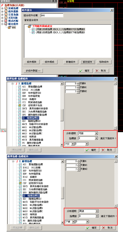 不需寫公式,用 [組合條件] 就可以完成選股