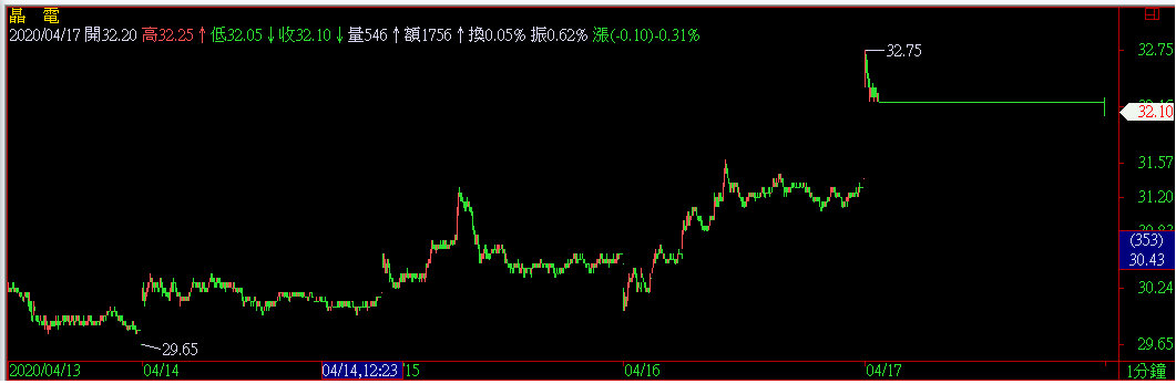 今日4/17如附圖在一分及五分週期出現一條很長直線,請問是怎麼回事?