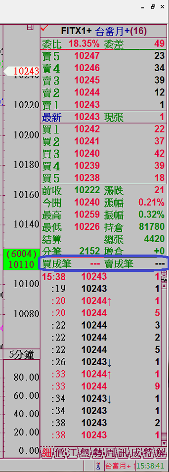 引用:最初由 cyberpeace 發表 請教高德 為何今天的買成筆與賣成筆沒有數據? (如貼圖) 末學感恩您!