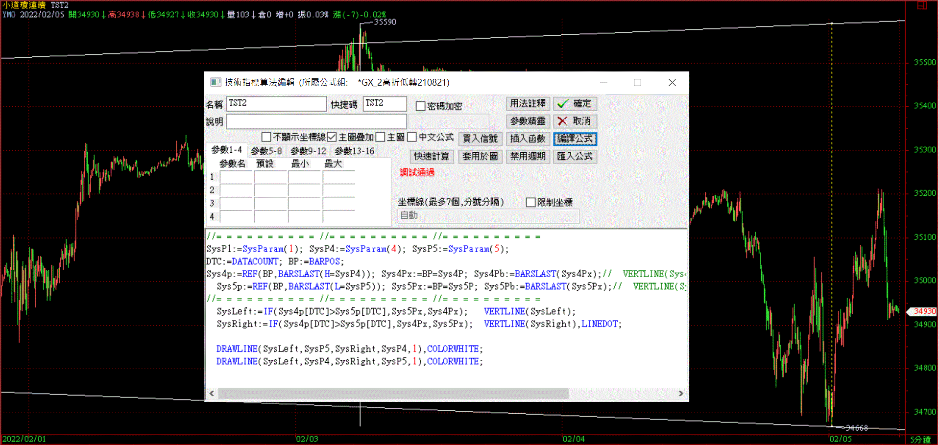 Sys4p:=REF(BP,BARSLAST(H=SysP4)); Sys4Px:=BP=Sys4P; Sys4Pb:=BARSLAST(Sys4Px);// VERTLINE(Sys4Px);{高下時間}