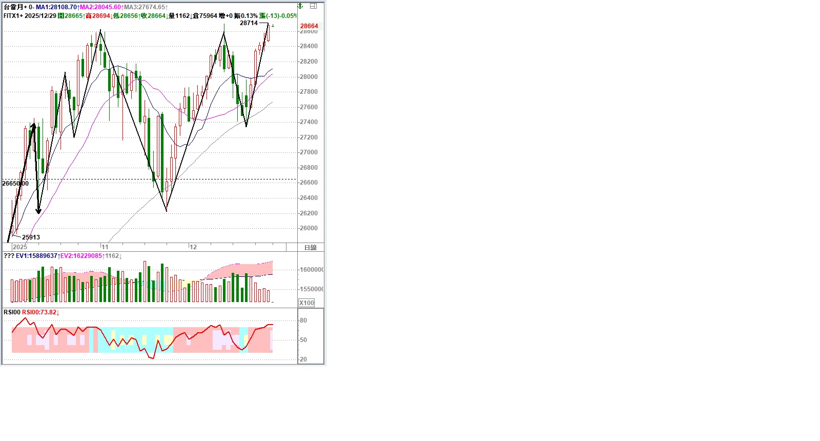 若您需求畫面區間OBV之最大值與最小值,方法是一樣的,依樣畫葫蘆去求就可