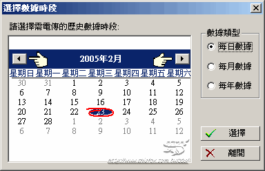 傳輸歷史數據時 固定日期並非今日而是顯示2004年 因此無法下載個別歷史數據 只能從每日定日期 而歷史資料是2004年 請問要從那裡修改