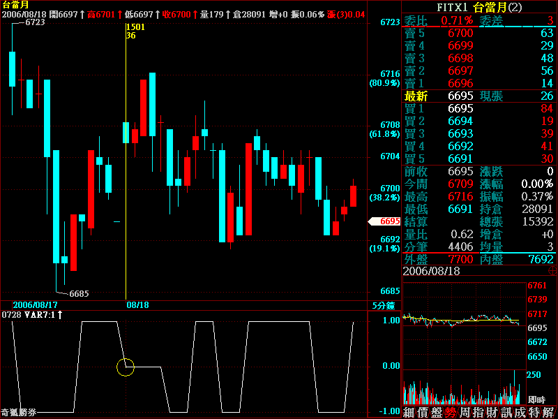 依今天0818的5分K為例.在8:50已經達成邏輯內的多單進場條件