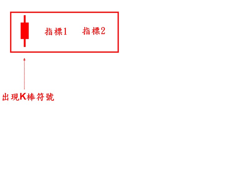 出現紅色K棒符號而且後面顯示兩種指標的名稱