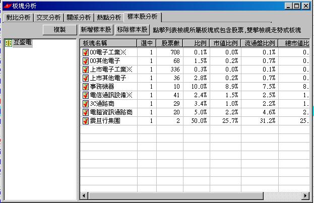 您可以利用軟體的樣本股分析,