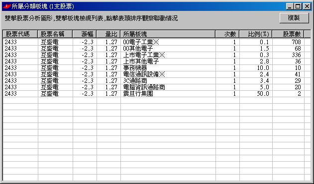 在數據列表中點選"2433互盛電"這支股票,