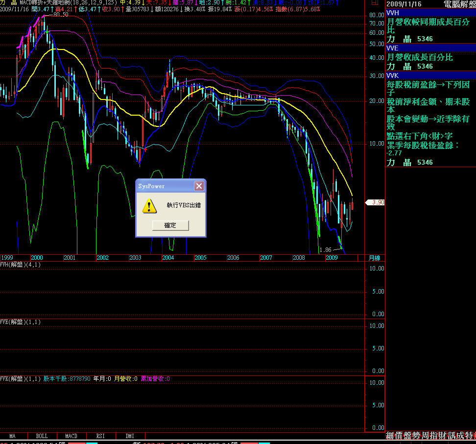 請教版主, 我把內建營收相關指標, 抓到副圖, 卻出現"執行VBS出錯"的訊息, 更新指標也一樣. 不知道原因出在哪裡?