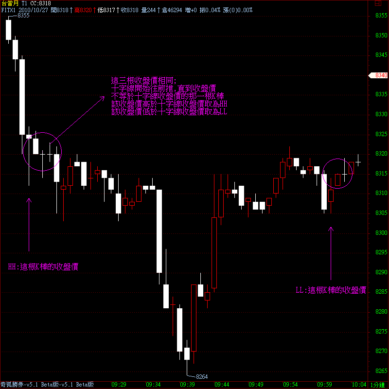 請問總版主:十字線開始往前推,直到收盤價不等於十字線收盤價的那一根K棒