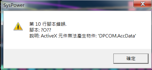 引用:最初由 hw6036 發表 無法看月營收 系統問題嗎 如何解決 謝謝 這樣試試看能否解決 主選單\外掛\奇狐工具程式\09.重新註冊相關的DLL檔案 若這樣做仍不行 請於上班時間來電公司, 我們協助您處理 (可能是被防毒系統限制住或為Windows權限方面的問題)