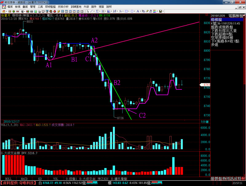 在今日的5分鐘K棒走勢圖中A1∼B1如何去計算C1 或是由A2∼B2如何去計算C2 詳如附圖,感謝指導。