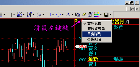 對不起, 圖貼不上去, 就是 有一個買一價 和賣一價的副視窗