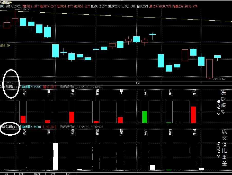 但想要將漲跌百分比 N 成交值比重差 各自分開 上下對應觀看 較清楚 可否幫忙修改使用 謝謝!!