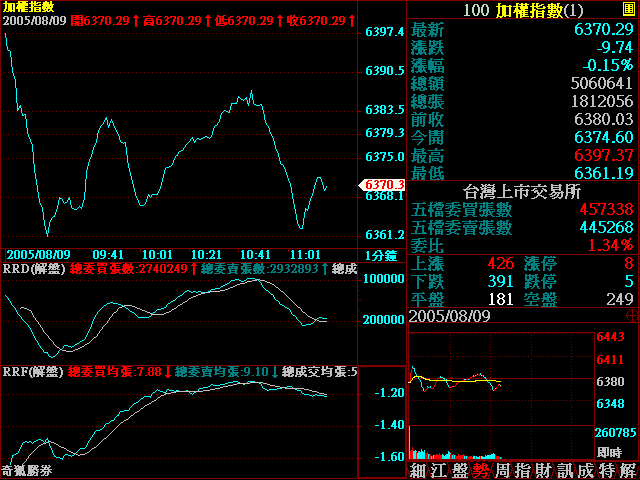請問:奇狐勝券是否可以看到大盤「每分鐘或每五分鐘均買均賣江波圖」,謝謝。