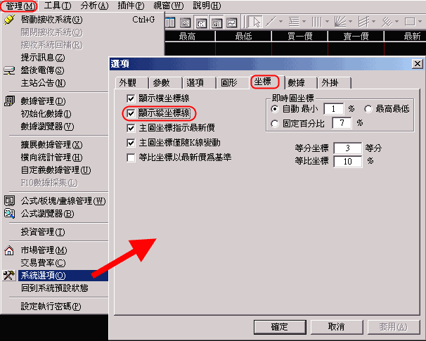 欲在 K 圖的分線圖中 ( 例如 5 分. 15分.....60分) 可以將今日的所有 K 棒和昨日的 . 昨昨日.....K棒很清楚的作區隔之尺度線要如何操作 ?