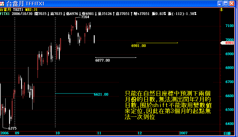 請教版大或高手們, 小弟現在想在日線上,畫上月線3-ma的扣抵值 但是同時想在日線上,也畫上下2個月的月線3-ma扣抵值 也就是這個主圖的指標要能延伸到下2個月 請問我該如何搭配shift函數來用呢?