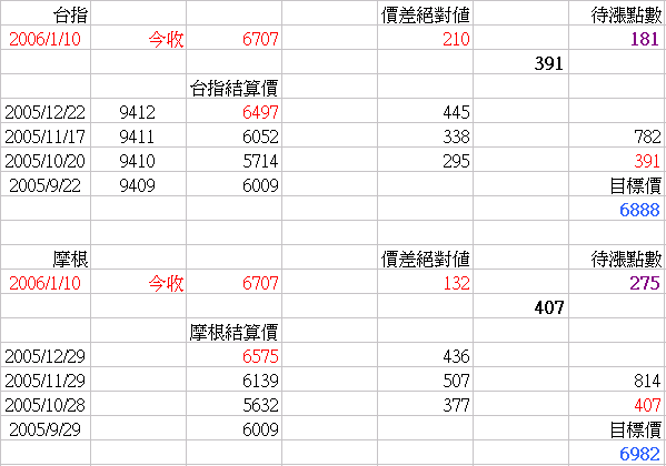 摩根20060124 → 6575+( (436+377+1)/2 ) = 6982