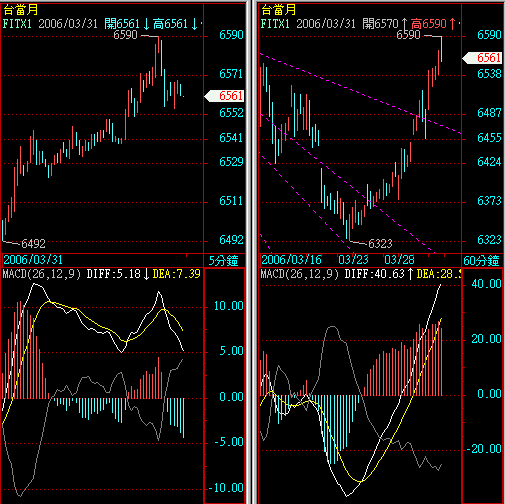 如題, 有可能如此做嗎 ? 就是在盤中不需要切換, 5 分鐘與 60 分鐘的技術分析線圖可以同時一眼看到相互對照. (多圖同列/多週期組合 => 不是我要的, 例如 : 我要同時看到 5 分鐘與 60 分鐘 的 MACD)