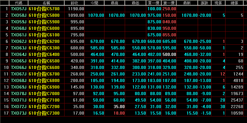 去觀察尾端 "611台指C6600" 沒數據的情況