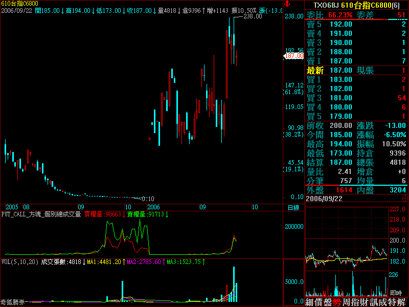 因加權指數日K到 2006/09/22 (今日)