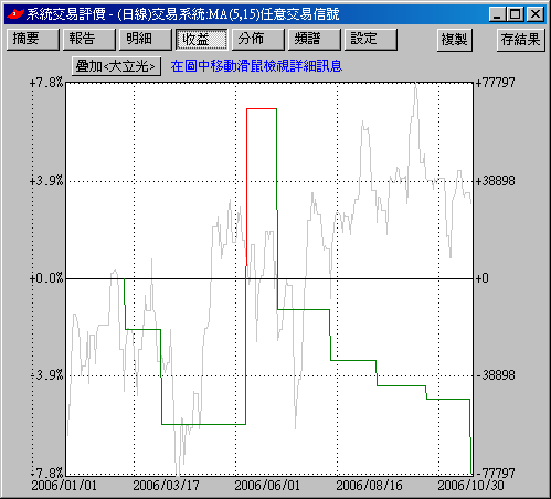請問交易系統跑出來有績效圖嗎?手續費如何設定?跑出來的績效要如何看呢?謝謝!
