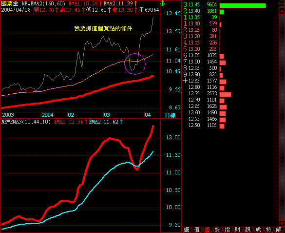 即 昨天收盤價小於 EMA2的60線, 今天最新收盤價大於EMA2的60線,