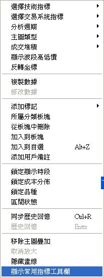 這設定是在主圖處按滑鼠右鍵的顯示常用指標工具欄 如下圖~