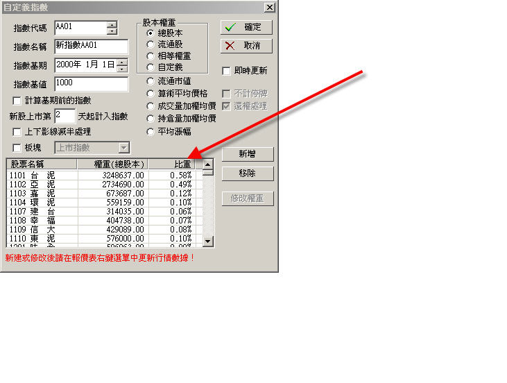 引用:最初由 dick414 發表 那裡可看出類股佔加權 的權重值 1.使用 [快樂股市] 中的 [ IA 類股成交比重 ] 公式 2.或使用 [即時綜觀] 公式觀看 http://www.chiefox.com.tw/bbs/showt...=&threadid=1194