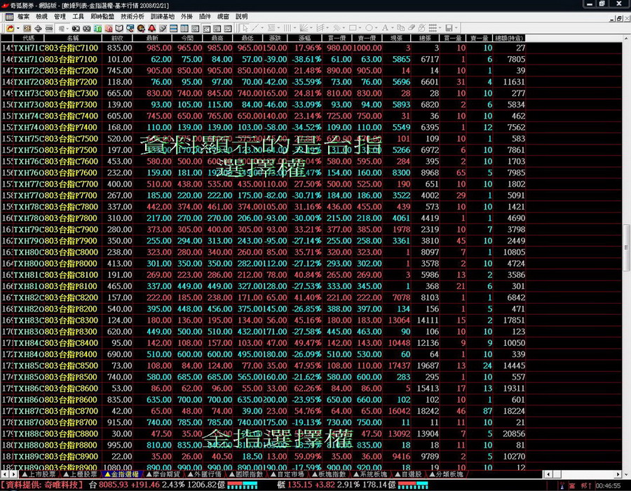 引用:最初由 eaglet 發表 請問∼突然間(不知道是哪一天?)板塊的內容完全不對了! 例如∼金指選擇權變成台指選擇權。 台指選擇權變成公債。 選擇板塊與所顯示出來的資料,完全不對! 是哪裡出問題了?該如何改正呢? 感謝∼