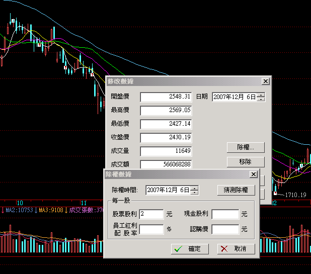 選擇除權把您的除權資料輸入按確定就完成以下的劃面了