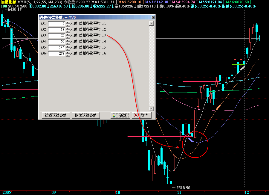 【管理】→【公式/版塊/畫線管理】→【技術指標】→【a.財富人生】→【MVB】