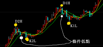 條件低點 的成立,需要 D1H 跟 死叉 這兩個點,