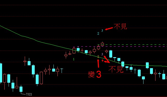 想修正一個小地方: ==舊觀念== 1 突破均線 2 突破 1 的高,並重新定義新高,待 3 突破。 3 突破新 2 的高。 ==新觀念== 1 突破均線 原本 2 突破 1 的高,但只要遠離 1 四根k線 (含) 才突破 1 高,當成 3 ,出現訊號。 有附圖,感謝