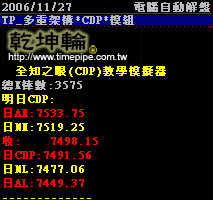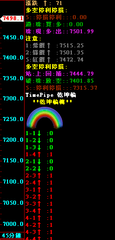 嗯 "乾坤輪" 有意思! 能否請大大在這 7500 指數高檔之際, 每日盤後 以"乾坤輪" 預告次日盤中 多空轉折價位, 讓大家見識一下 "乾坤輪"的高明之處, 或者 它只是又一個事後諸葛亮指標?
