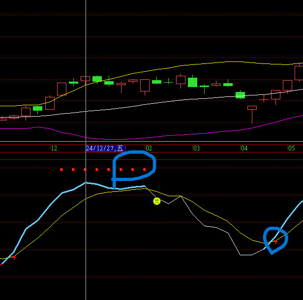 引用:最初由 chelsea0707 發表 請教版主, KD高檔鈍化3根以上,就是K值大於80連續3根以上,接著死叉后,再黃金交叉,如圖,請問這個可以寫成公式嘛, (KD參數為933,或者是可以方便修改KD參數參數的公式),謝謝您 KD 請自行帶入,寫法如下: CK:=ref(sum(K>80,3)=3,1); SS:=cross(K,D) and ref(CK,barslast(cross(D,K))); VERTLINE(SS) linedot colorred;